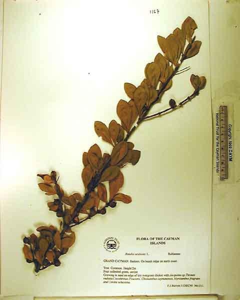 Small tree, height 2m Locally common. On edge of dry evergreen thicket.. Jacquinia keyensis,Thrinax radiata,Cocothrinax proctorii, Chionanthus caymanensis, Myrcianthes fragrans and Cordia sebestena