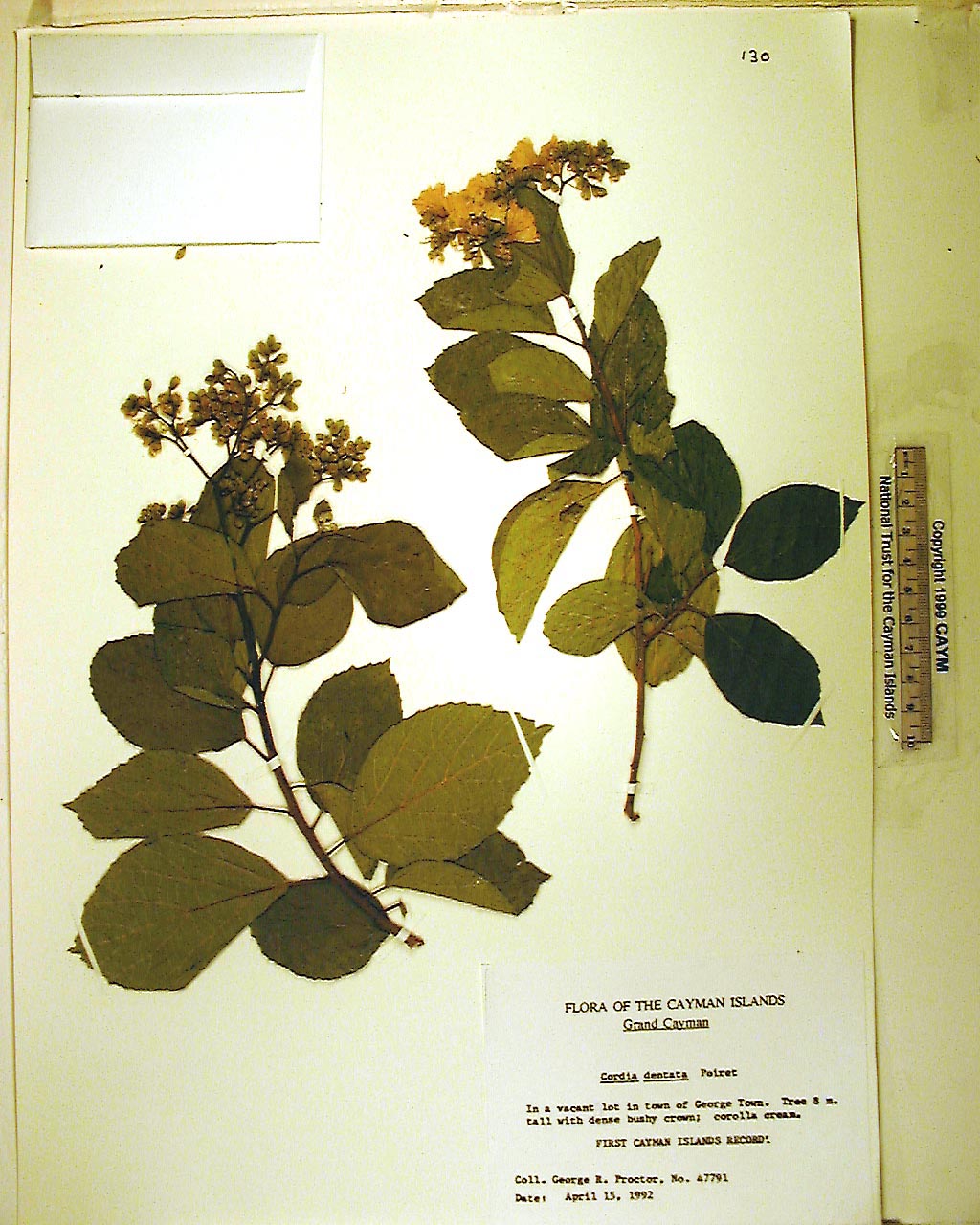 Large tree, height 8m Locally rare. Corolla cream. FIRST RECORD FOR THE CAYMAN ISLANDS.. Disturbed